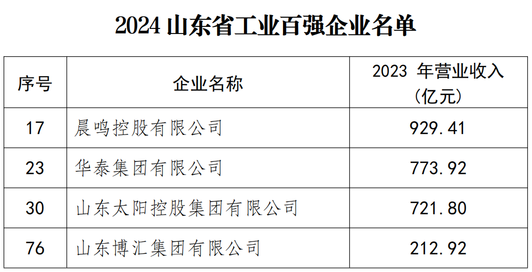喜报:晨鸣、华泰、太阳、博汇荣登山东百强企业系列榜单