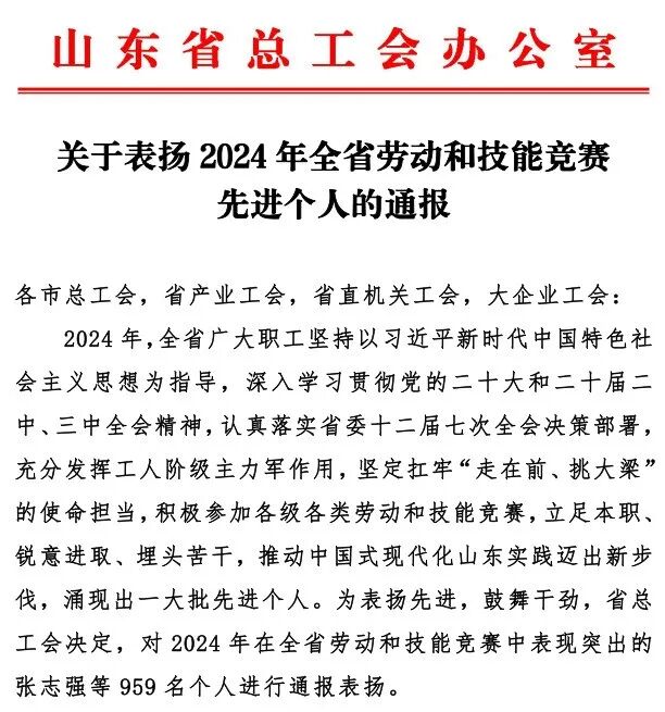 喜报:协会多家会员单位职工被省总工会授予“2024年全省劳动和技能竞赛先进个人”称号